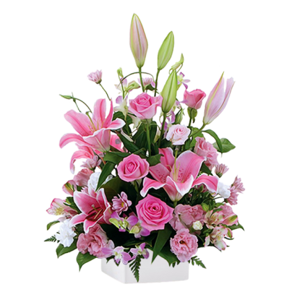 หมวดหมู่สินค้า : แจกันดอกไม้แจกันดอกไม้ Harmony Pink จัดเต็มด้วยดอกกุหลาบชมพู/ขาว, ไลเซ็นทัส, และคาร์เนชั่นสีเหลืองแสนหวาน จัดลงใน แจกันเซรามิก หรูหรา เหมาะสำหรับมอบเป็นของขวัญพร